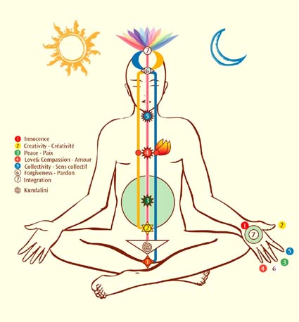 L’éveil de la kundalini, énergie sacrée, permet d’établir un état apaisant de méditation silencieuse en état de conscience sans pensées.